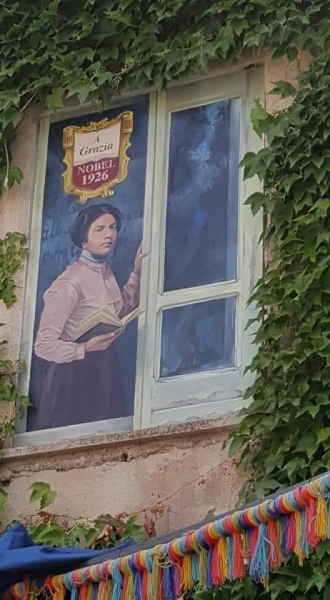 Ho pensato ad una giovane Grazia affacciata alla finestra in cerca di ispirazione mentre guarda al paesaggio e alla sua Nuoro . In mano tiene un libro e nella stanza iniziano a volteggiare pensieri e parole, quelle che la porteranno nel 1926 a vincere il premio Nobel della letteratura.