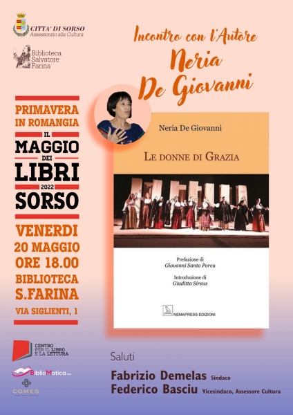 Venerdì 20 maggio, presso la Biblioteca comunale di Sorso, per il Maggio dei libri, Calendario nazionale del Ministero della Cultura, ancora con "Le donne di Grazia” approfondirò le protagoniste più famose della narrativa deleddiana, da Olì di “Cenere” a “Annesa” dell’Edera”, a Marianna Sirca, La madre fino alle sorelle Pintor di “Canne al vento”.