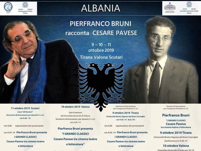 In occasione della SETTIMANA DELLA LINGUA ITALIANA NEL MONDO, Pierfranco Bruni presenta in Albania “I GRANDI CLASSICI - CESARE PAVESE Tra cinema teatro e letteratura” durante il ciclo di Corsi e Conferenze presso le maggiori sedi accademiche istituzionali a Tirana, Valona, Scutari (di seguito il calendario degli eventi).