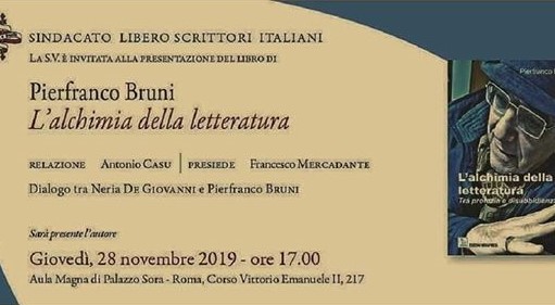 26/11/2019, 10:56GIOVEDÌ 28 NOVEMBRE L'ALCHIMIA DELLA LETTERATURA (Nemapress) di PIERFRANCO BRUNI.